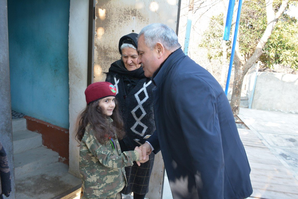Rayon rəhbəri Borsunlu kəndində Birinci Qarabağ müharibəsi şəhidi Axundov Babək Mehdi oğlunun ailəsini ziyarət edib
