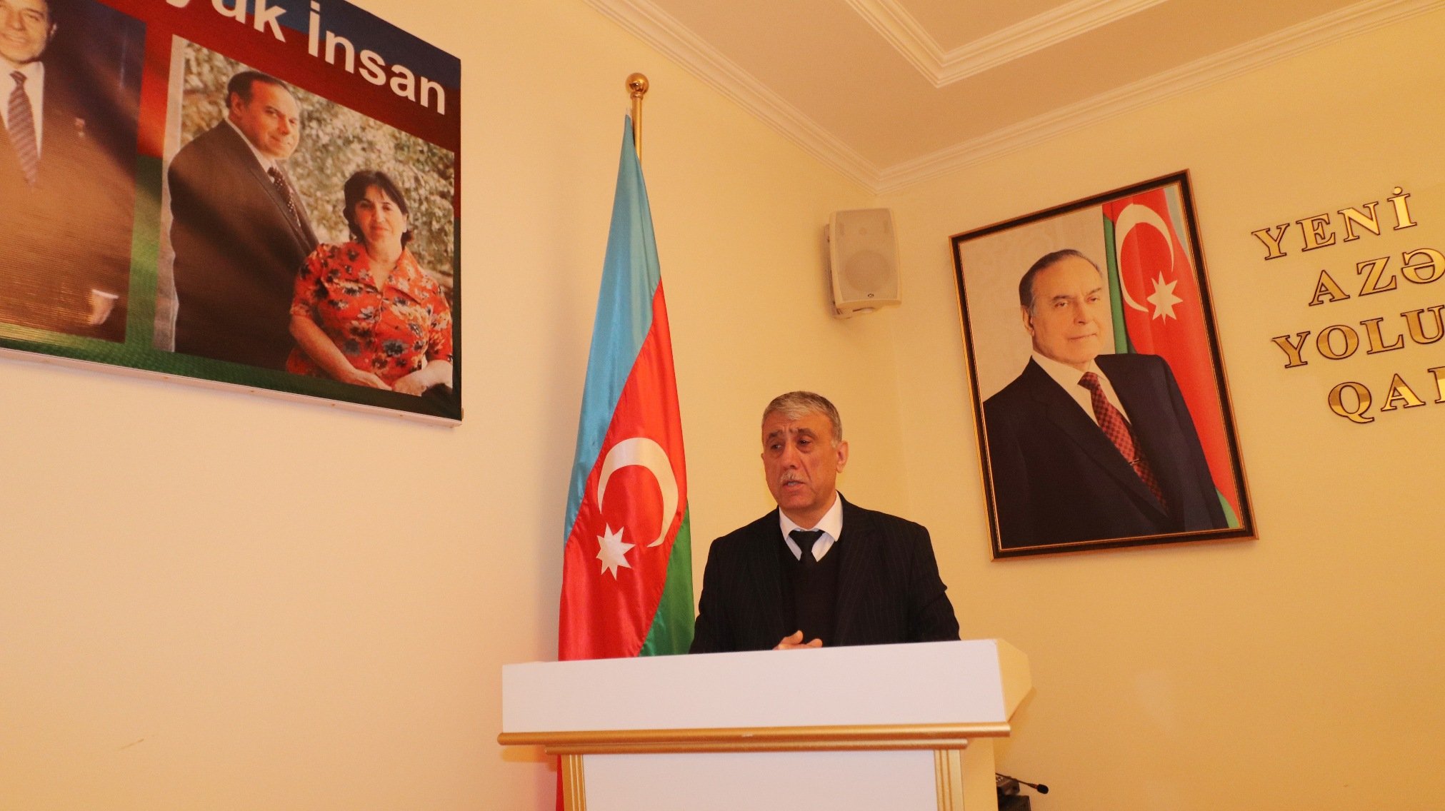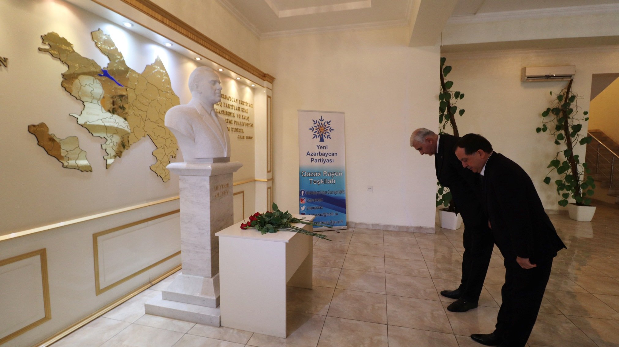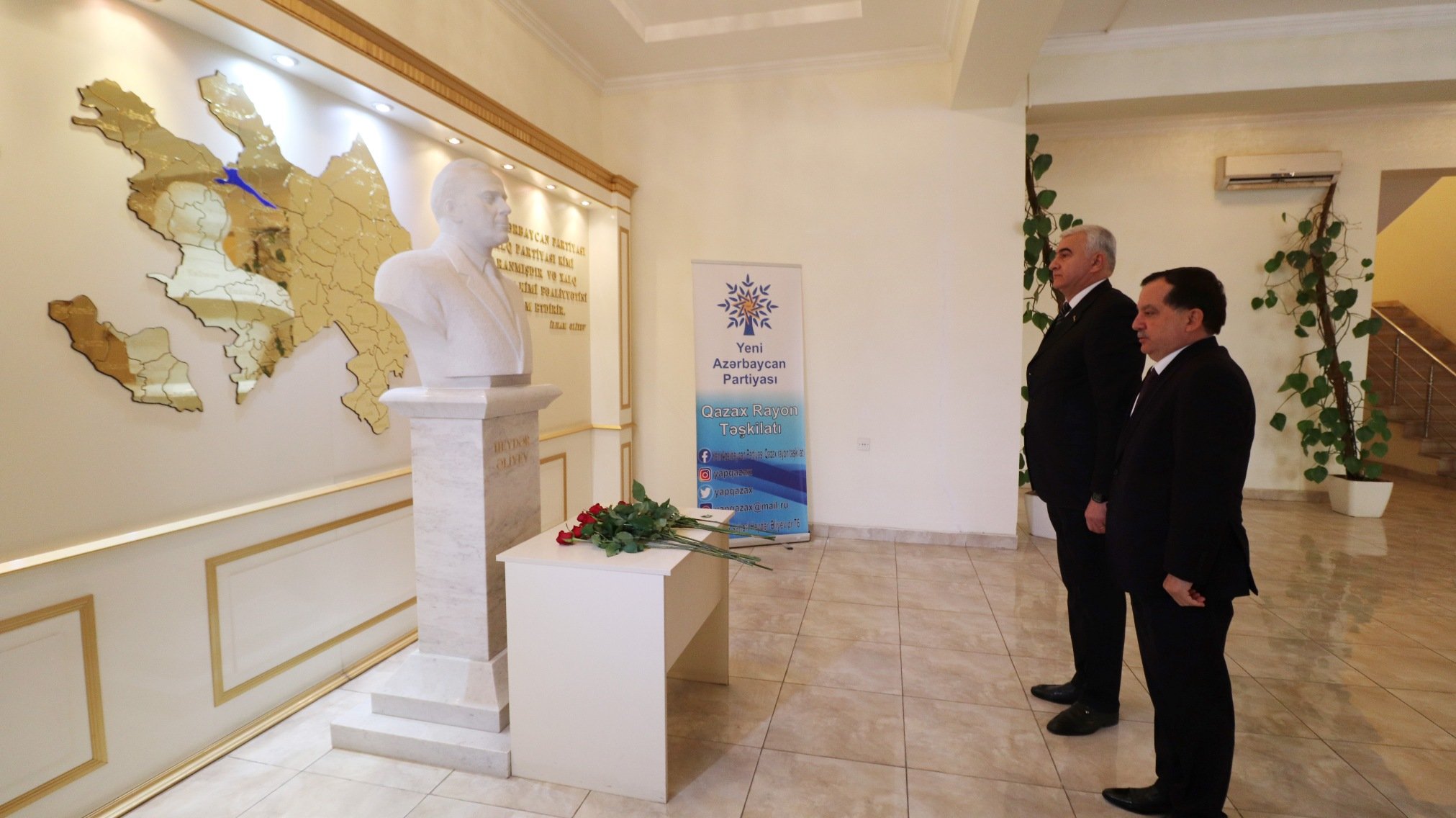 Tədbirdə əvvəlcə YAP Qazax Rayon Təşkilatının inzibati binasında Ümummilli Lider Heydər Əliyevin büstü önünə gül dəstələri düzülərək dahi şəxsiyyətin əziz xatirəsi ehtiramla anılıb.